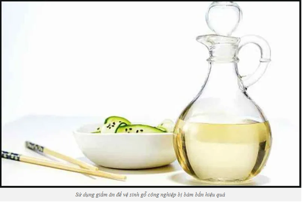 Nếu phát hiện những vết bẩn cứng đầu trên sàn gỗ mà nước không thể làm sạch, thì dấm ăn cũng là một trong những phương pháp vệ sinh gỗ mà bạn nên lựa chọn, bởi giấm có thể giúp loại bỏ những vết bẩn khó tẩy rửa trên bề mặt gỗ công nghiệp.