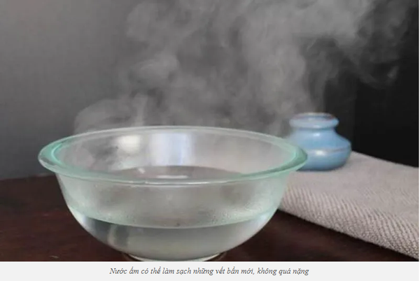 Bạn có thể cho nước nóng vào trong thau nước, nhúng khăn và vắt bớt nước đi, sau đó làm sạch khu vực bề mặt gỗ bị bẩn. Việc dùng nước nóng để vệ sinh có thể dễ dàng tẩy rửa được chất bẩn bám trên bề mặt mà không làm hỏng hay giảm chất lượng của gỗ. Bạn cũng nên lưu ý là cách này chỉ phù hợp với những chất bẩn dễ lau chùi.